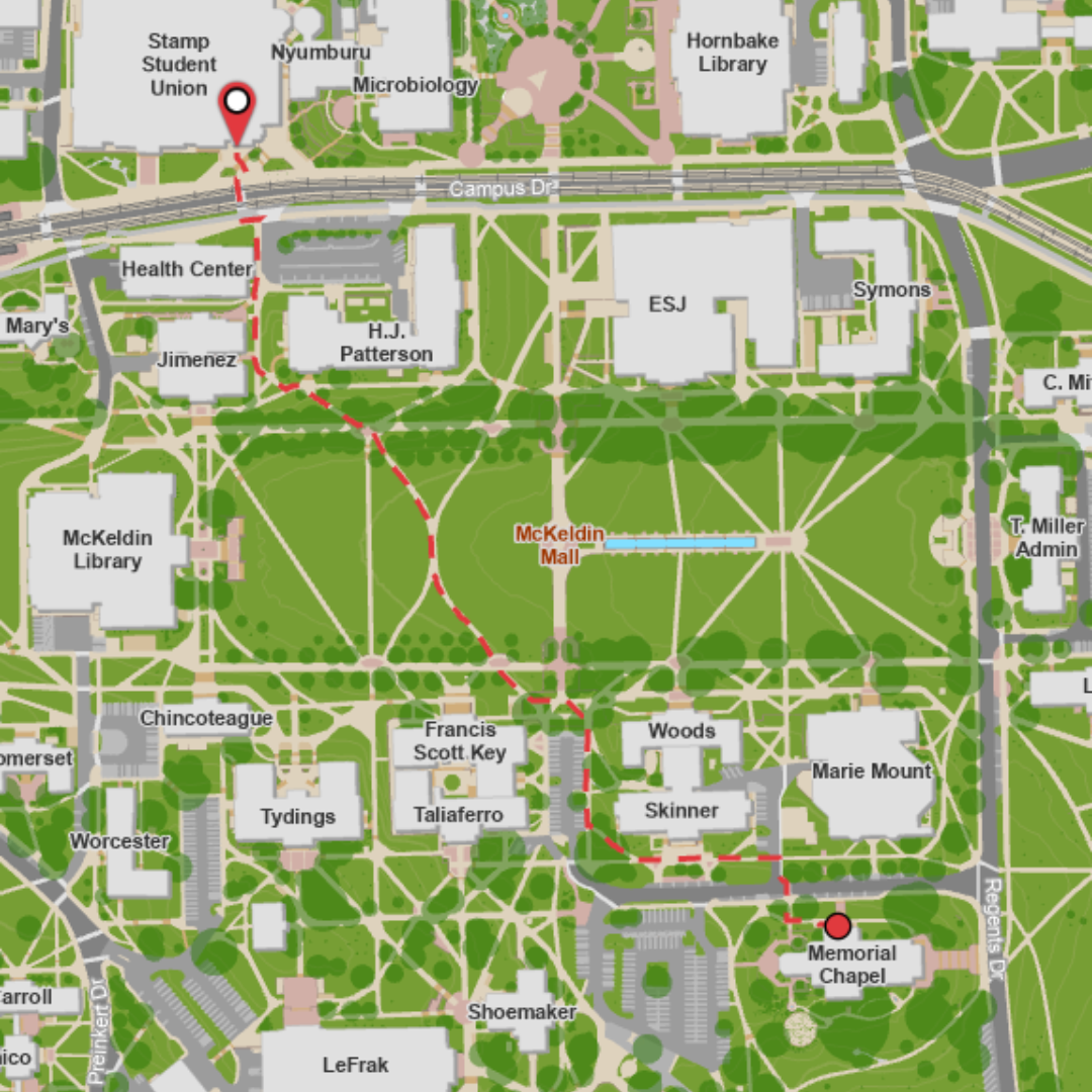 Standard Walking Path from Memorial Chapel to Adele H. Stamp Student Union