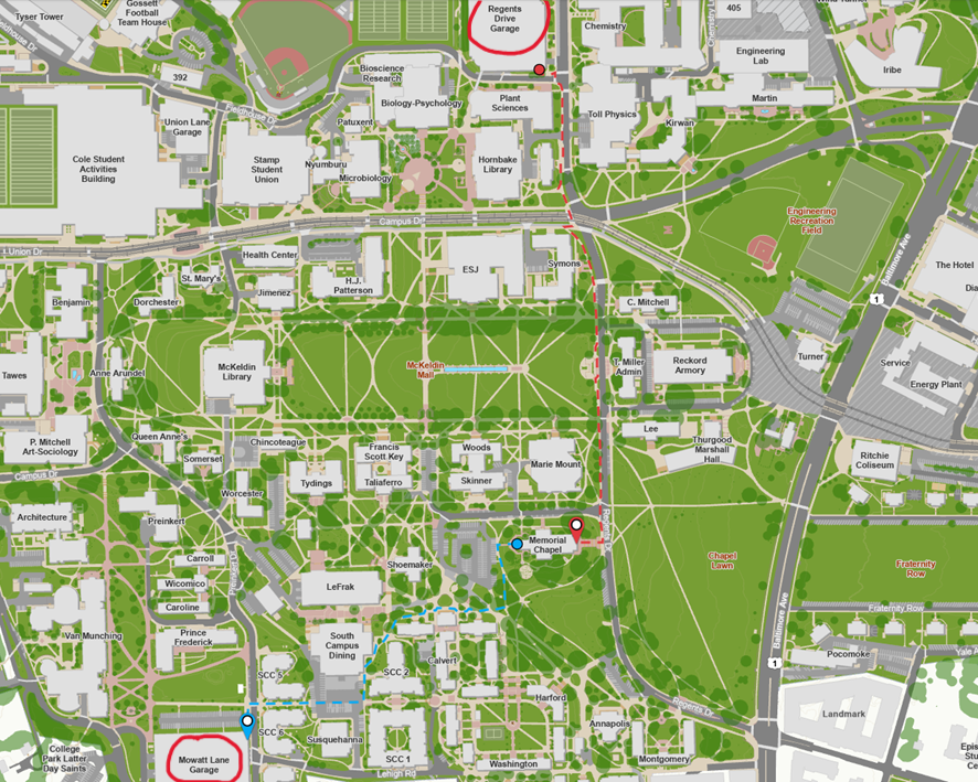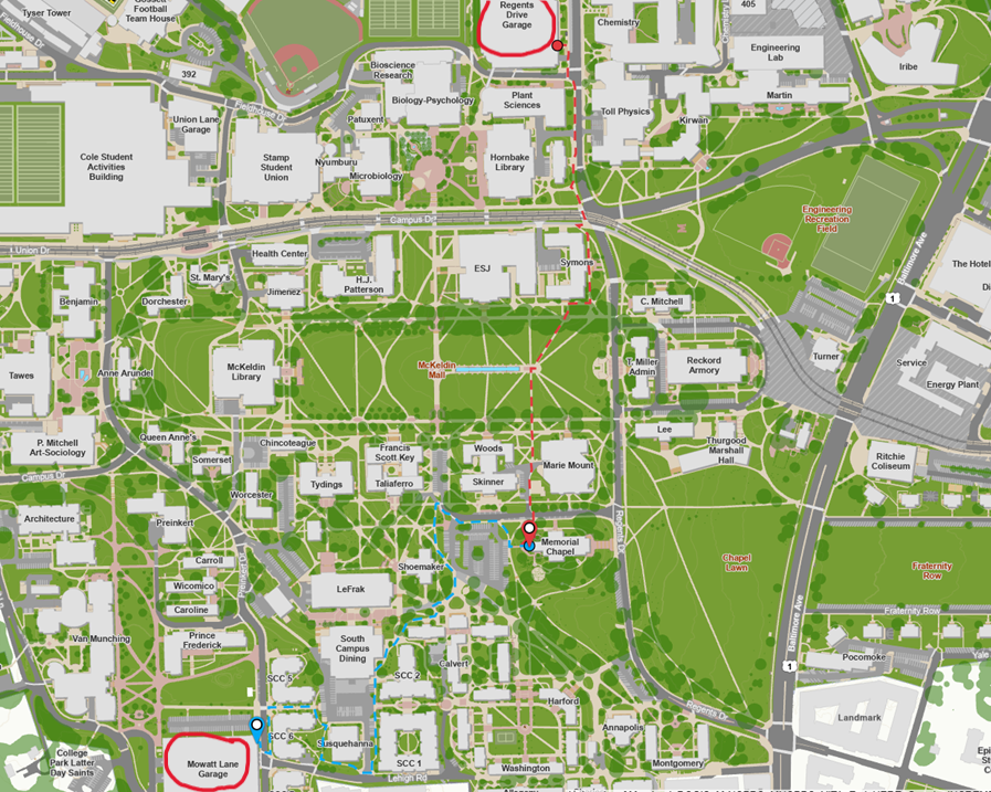 Walking Directions from parking garages to the Memorial Chapel